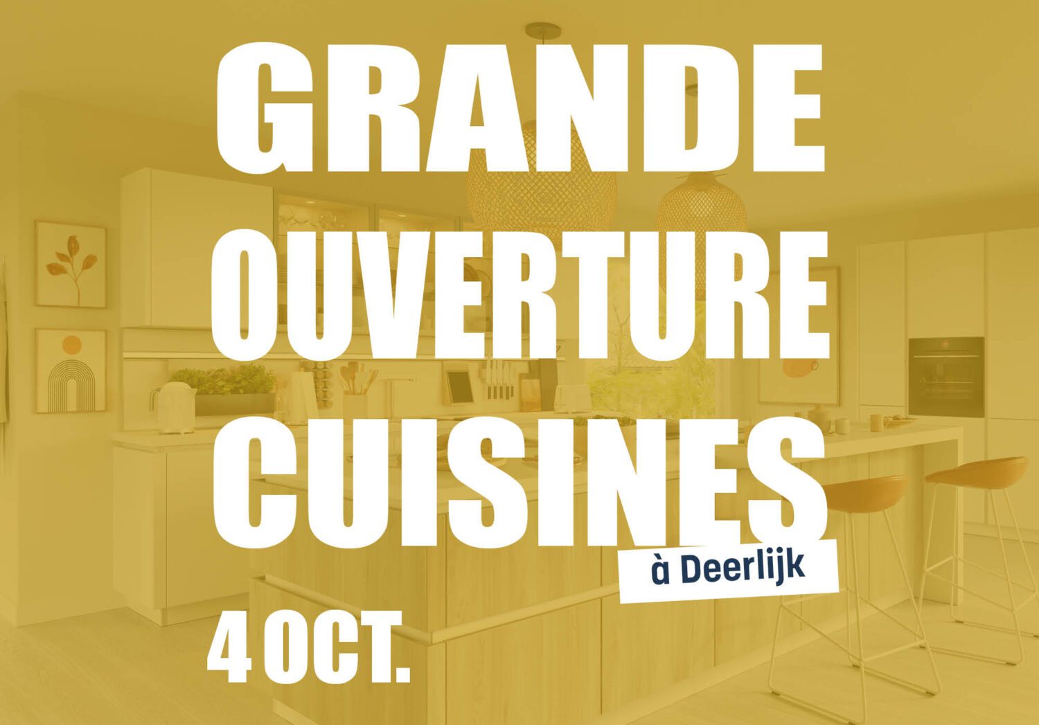Samedi 4/10 : grande ouverture du département cuisines à Deerlijk avec des goodiebags, une roue des prix, une crêpe gratuite dès 100 €, un concours et des remises Portes Ouvertes — découvrez toutes les actions.