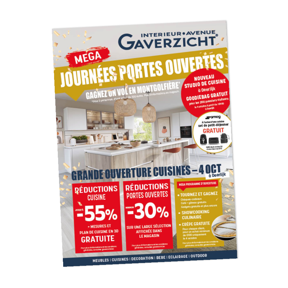 Vous êtes curieux de découvrir les meilleures offres de nos méga journées portes ouvertes ? Consultez une sélection de produits en promotion dans notre folder en ligne et découvrez toutes les grandes actions sur les meubles, la déco et bien plus encore dans nos showrooms !